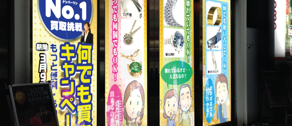 店頭や窓を使い、日々変わる金やプラチナの買取価格を提示してください。