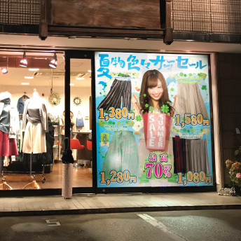 大きな窓ガラスがある店舗の方はぜひ広告幕をお試しください。