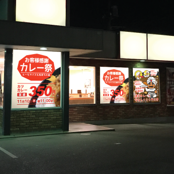 お店の中で掲示していてはお店にくる常連さんくらいしかわからない情報になってしまいますので大型掲示板幕等を使ってお店の外、道路に向かって掲示していきましょう。