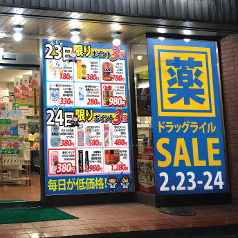 店頭でチラシの一部を大きく掲示することによってチラシを見ていない来店した方にも、お得情報が一目でわかるようになります。