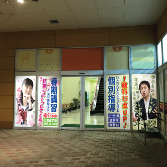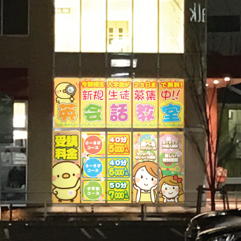 モールの中に入っているから広告を出すスペースがガラス面しかない。