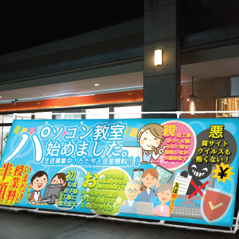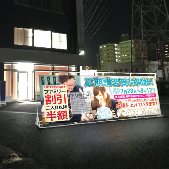 キャッチコピー掲示板の大型掲示板幕なら10万円程度で設置できます。これでお近くに住む人々へ宣伝することができます。 |