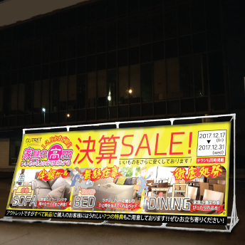 お客様が待っている「決算セール」や「在庫処分」。しかしお客様に認知されなければ集客が少なくなってしまいます。キャッチコピー掲示板をチラシと連動させることによって販売の機会ロスを減らしましょう。
