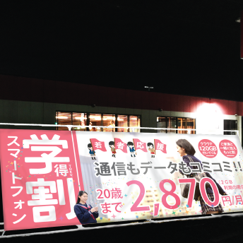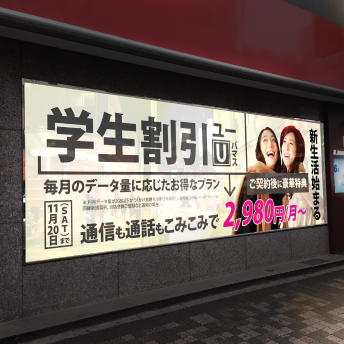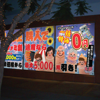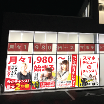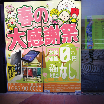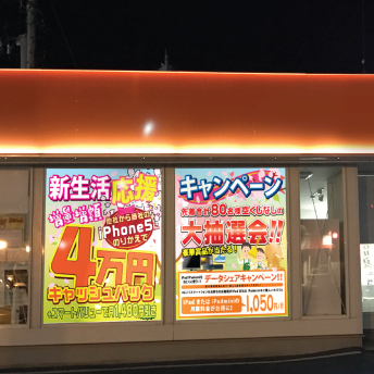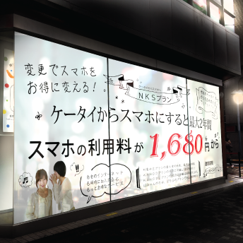 色々なサービスが出ている携帯事業。毎回看板を出せないし、窓への掲示物印刷だって大変ですよね。