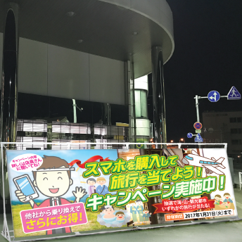 似たようなサービスばかりならアピールの強い方が有利なのでガラス広告幕を使って大きくアピールしてください。 |