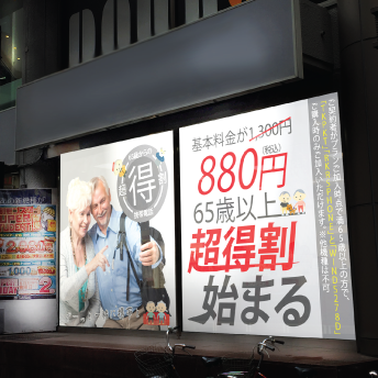 しかし、65歳~70歳以上をターゲットにしたキャンペーンを行っても利用率は少ないのではないでしょうか。なぜなら高齢の方々は情報を知るルートが少ないのです。テレビCMでやっているけど、どこでやっているのかわからないなんてことが無いようにお店のガラスを使って誘導しましょう。 |