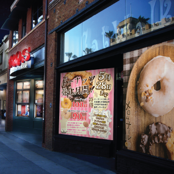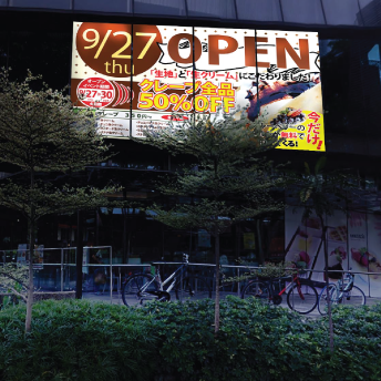 窓ガラス広告幕を使って悠々と宣伝を行うことができます。 |