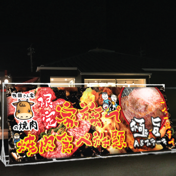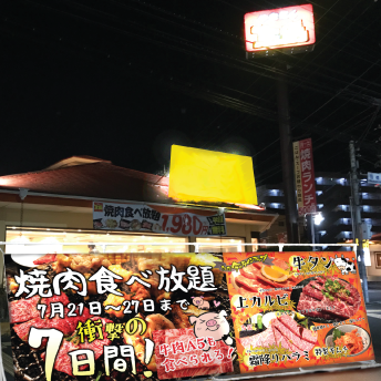 お肉をこれでもかというほど焼いてある写真を大型看板で表現できれば食べたいという気持ちの後押しができるはず。 |